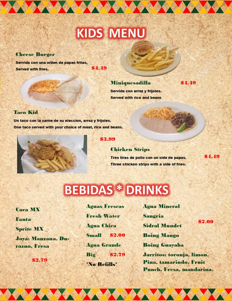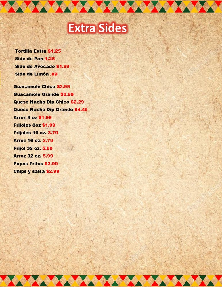 Served with beans and rice, corn tortilla or flour / Servidos con frijoles y arroz, tortilla de maiz o harina